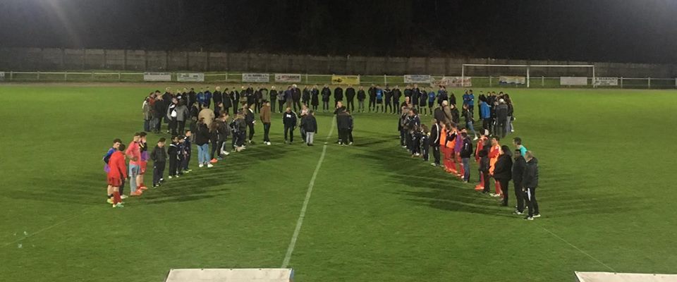 Le nœud humain réalisé au stade Léopold Goryl, avant la rencontre JSBA - PUY L'EVEQUE en Promotion Ligue de la poule D ce samedi 18 mars....