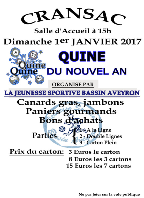 Dimanche 01 Janvier 2017 à 15h00, salle des fêtes de CRANSAC.