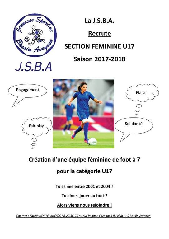 L'école de football de la JSBA crée une équipe U17 féminine, pour les joueuses nées entre 2001 et 2004.....