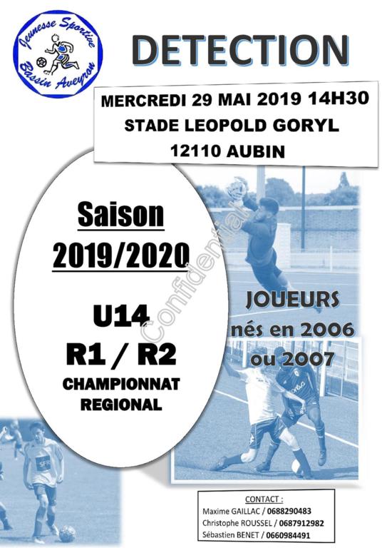 La Jeunesse Sportive du Bassin Aveyron (J.S.B.A.) organise une détection le mercredi 29 mai 2019 à 14h30 au stade Leopold Goryl, concernant la categorie U14 pour la saison 2019/2020 (joueurs nés en 2006 et 2007)