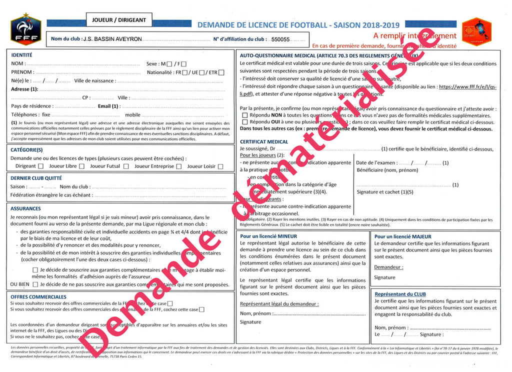 Pour une nouvelle demande ou un changement de club, vous devez obligatoirement remplir une demande papier.