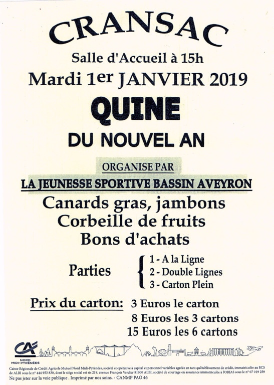 Le 1er janvier à la salle d’accueil de Cransac à 15h